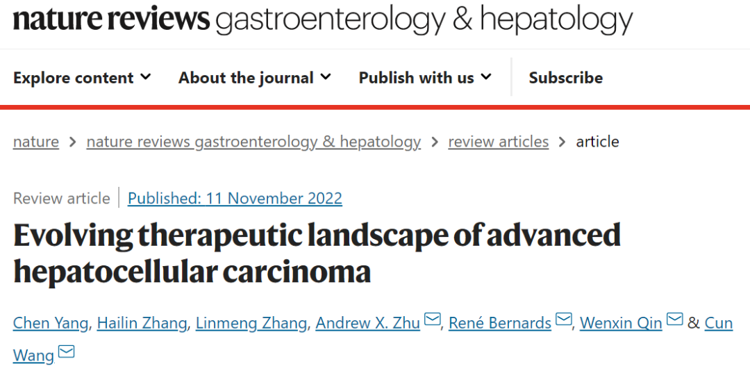 Nature系列综述:上海交大覃文新/王存团队总结进展期肝癌的治疗前景