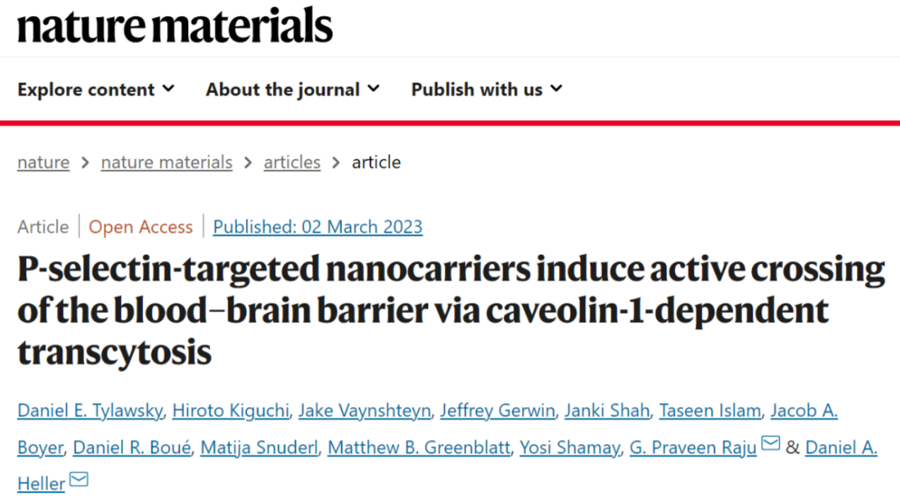 近日,纪念斯隆·凯特琳癌症中心的研究人员在 Nature 子刊 Nature Materials 上发表了题为: P-selectin-targeted nanocarriers induce active crossing of the blood–brain barrier via caveolin-1-dependent transcytosis 的研究论文。