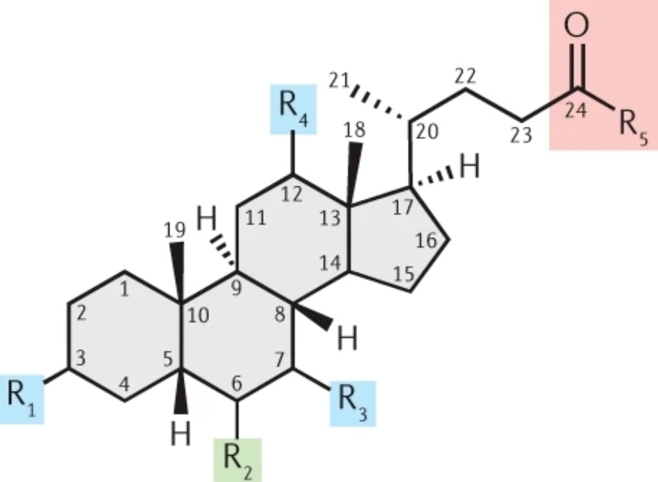 其他细菌修饰包括氧化/差向异构化、脱硫、酯化和偶联。细菌羟基类固醇脱氢酶氧化或还原BA的类固醇以产生氧代-BA和类固醇立体异构体。虽然一些细菌同时携带氧化性和还原性立体特异性羟基类固醇脱氢酶,但大多数细菌需要多种细菌的羟基类固醇脱氢酶合作来改变主链羟基的立体化学结构。在人体中,UDCA和其他立体异构体是由CDCA的差向异构化合成的。细菌差向异构化的功能可能部分地降低了BAs毒性(如DCA变为isoDCA)。宿主为促进排泄而添加的硫酸盐基团可以被表达类固醇3-硫酸酯酶的细菌去除。据报道,酯化BAs在人类粪便BAs中占很大比例(接近25%)。尽管抗生素治疗过程中消耗了BA酯,但负责产生BA酯的细菌酶尚不清楚。尽管如此,已报道了主要BAs(CA、CDCA、DCA和LCA)的酯化类型。