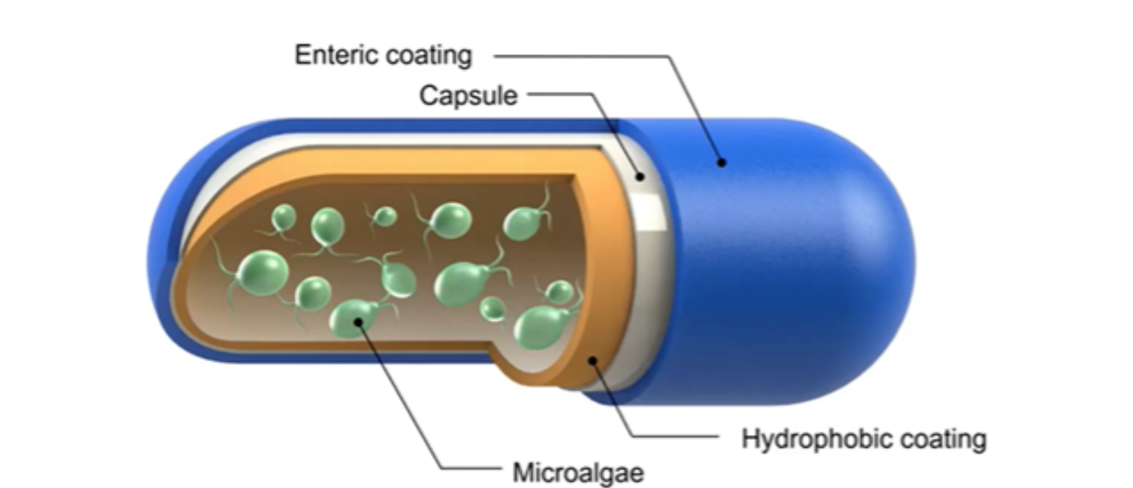 藻类马达有望实现药物递送,但在药物输送到胃肠道时,需要考虑藻类会被胃内酸性环境降解,为解决这个问题,使用胶囊对藻类进行封装,胶囊外表面涂有pH响应聚合物,以保护口服药物免受胃酸的影响 (图4)。