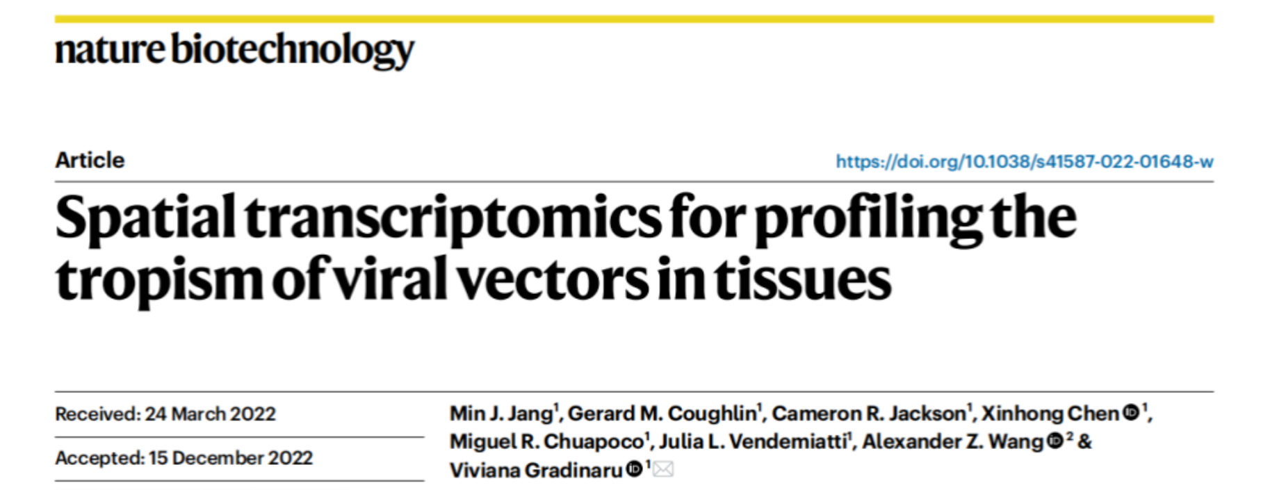 文章题目:Spatial Transcriptomics for Profiling the Tropism of Viral Vectors in Tissues