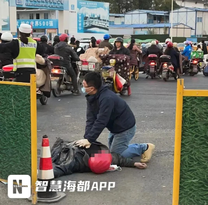 然而,不一会儿,伤者的心跳就消失了,叶鹏马上进行胸外按压,持续心肺复苏。