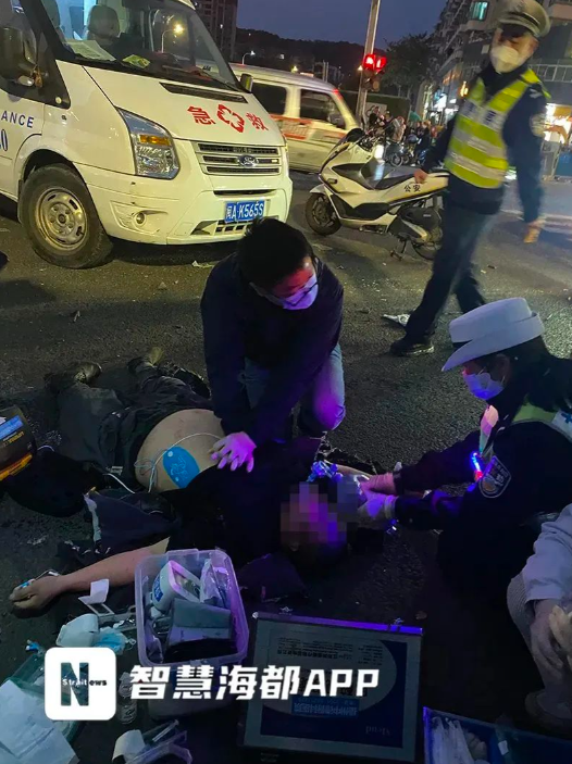 3月3日傍晚,福州晋安区一生鲜集市附近,突发车祸,福建省立医院麻醉科医生叶鹏博士,在下班回家途中看到后,第一时间上前施救,“伤者是一名中年男子,看上去伤势严重,下肢完全粉碎,一直在出血。检查后发现,伤者虽然已没意识,但心跳还在。”