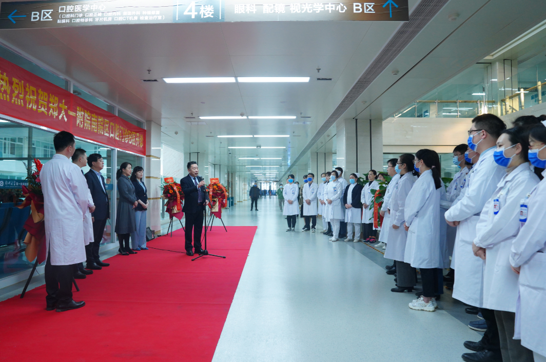 我院副院长苟建军、医务处处长王守俊、门诊办主任游泳、郑州大学口腔医学院党委书记王庆祝、口腔医学院院长何巍以及南院区全体口腔医护人员参加了开诊仪式。