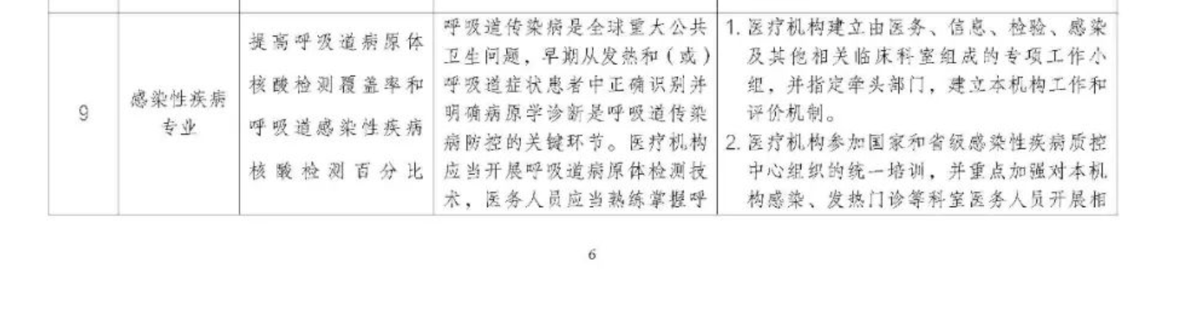 (1)感染科:提高呼吸道病原体核酸检测覆盖率和呼吸道感染性疾病核酸检测百分比。