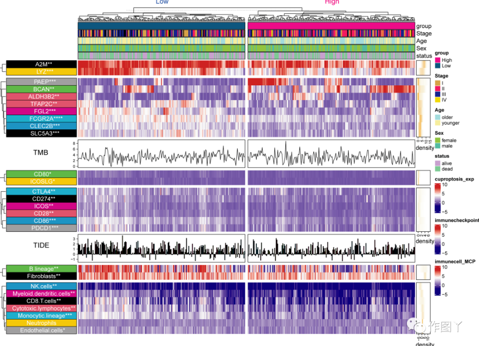 02、CM中铜死亡亚组的鉴定和两组间预后和TME的比较