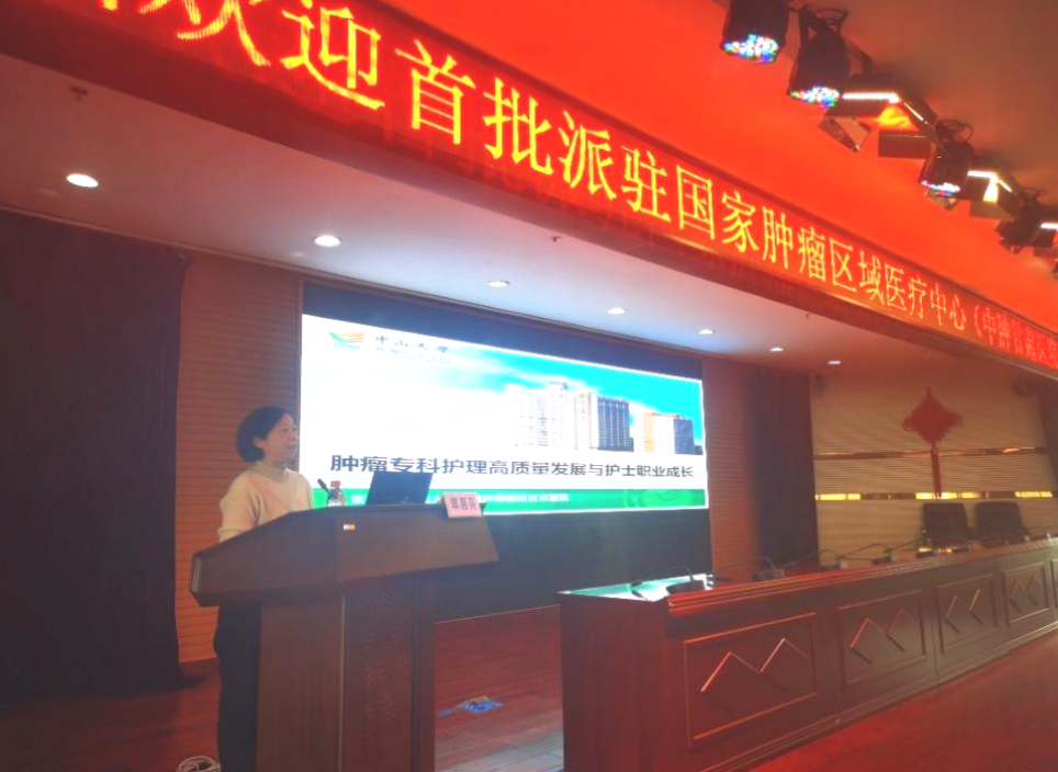 覃惠英主任作“肿瘤护理高质量发展与护士职业成长”的报告