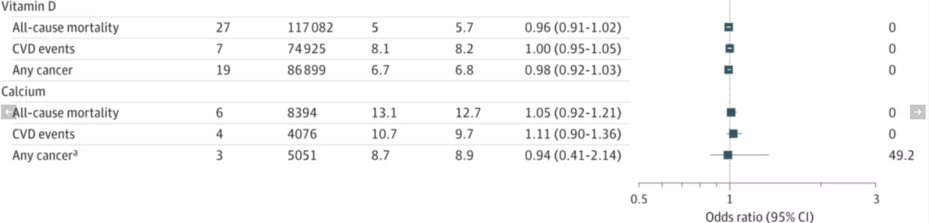 维生素D、钙也是生活中常见的补充剂。但大多数证据显示,单从降低死亡、心血管疾病、癌症方面来看,这两种补充剂没有体现出太多的好处。此外,如果过量使用,要小心肾结石的发生。
