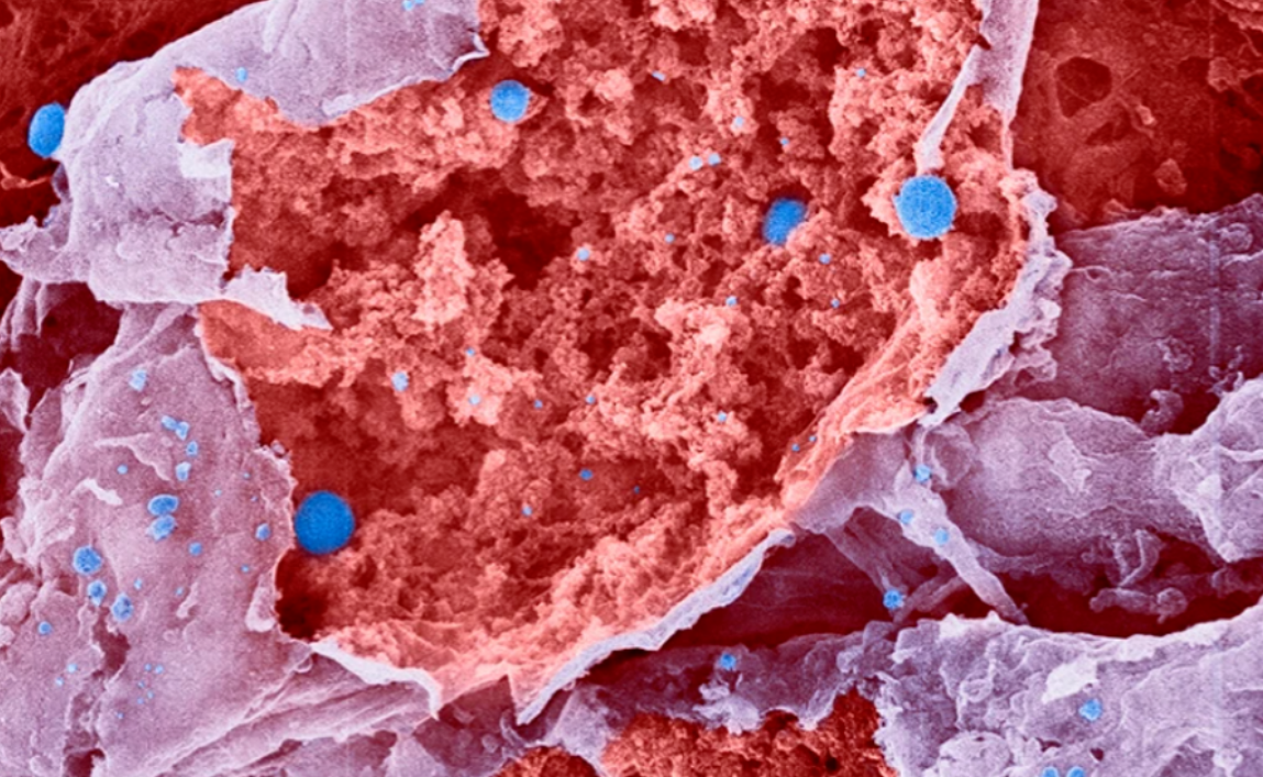 流感病毒颗粒(蓝色)从破裂的细胞中释放 在这项最新研究中,研究团队首先观察到,小鼠感染流感也会导致一些与人类相同的疾病症状,并且当他们使用阿司匹林、布洛芬以及一种靶向前列腺素受体 (EP3) 的抑制剂治疗感染小鼠时,可以缓解这些症状。基于此,作者提出EP3可能存在于某种特殊的“疾病神经元”上,这些神经元会感应前列腺素并通知大脑呼吸道中存在病毒感染。