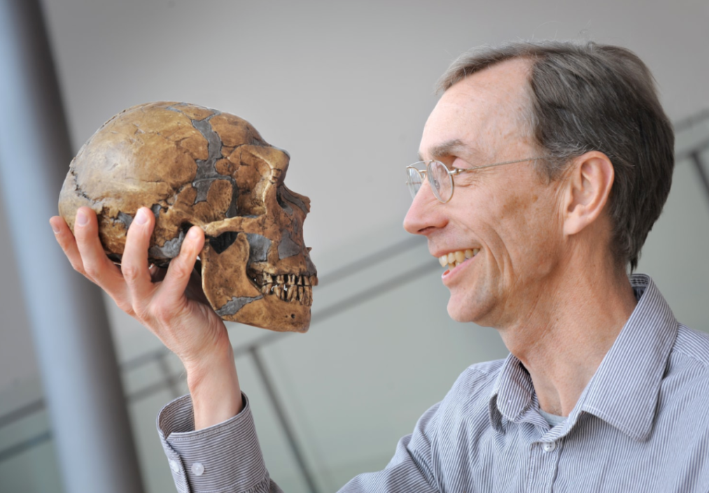 图 2. Pääbo 和尼安德特人头骨(图片来源: Frank Vinken)