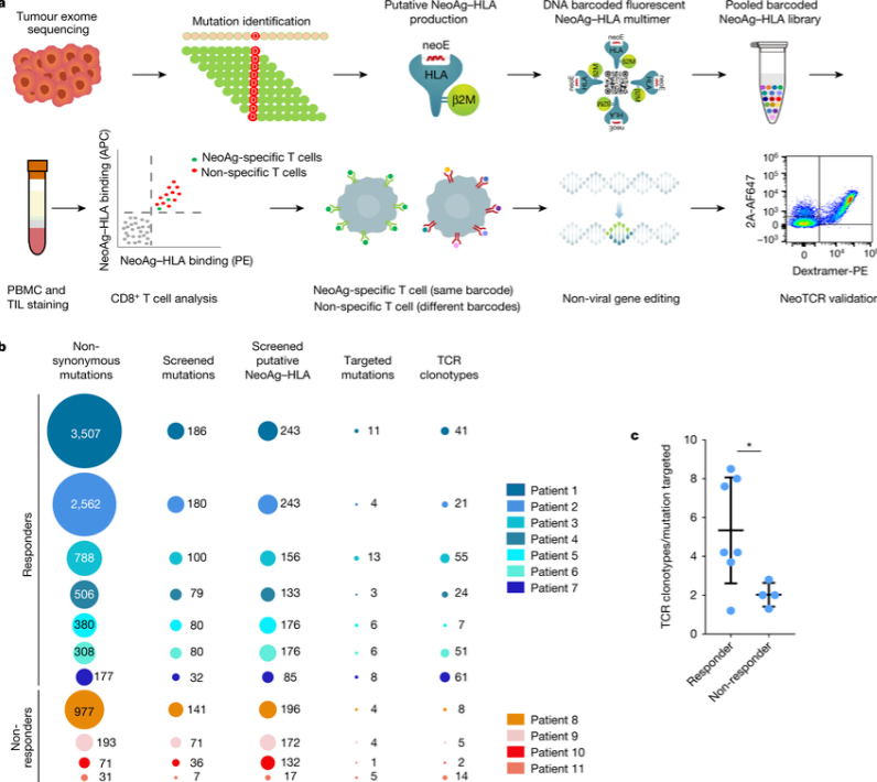 新抗原特异性T细胞的筛选及TCR克隆型的识别。 图片来源:Nature (2023). DOI:10.1038/s41586-023-05787-1
