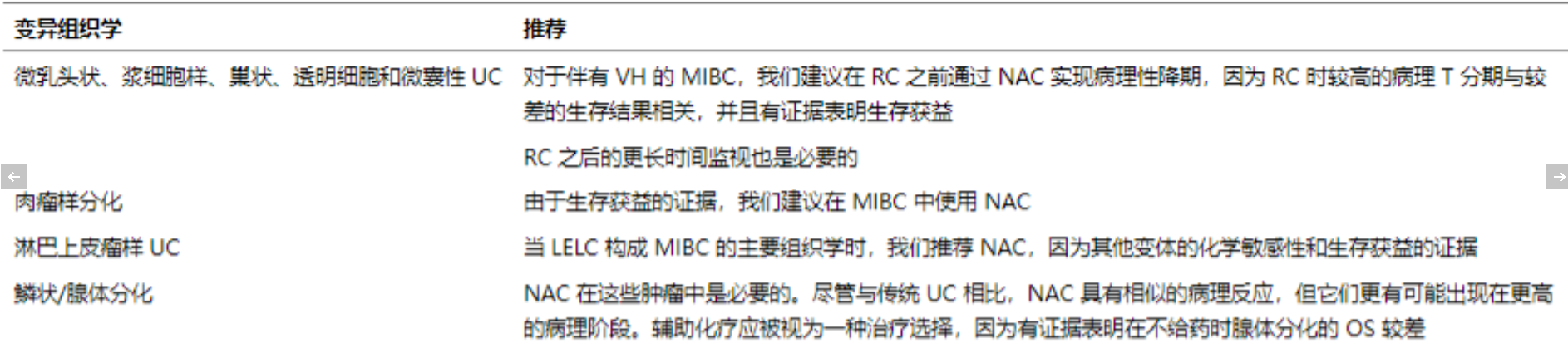 根据现有证据,决策帮助总结了我们关于非转移性 MIBC 伴 VH 治疗方案的发现,见图 3和 VH 具体建议在表 13.