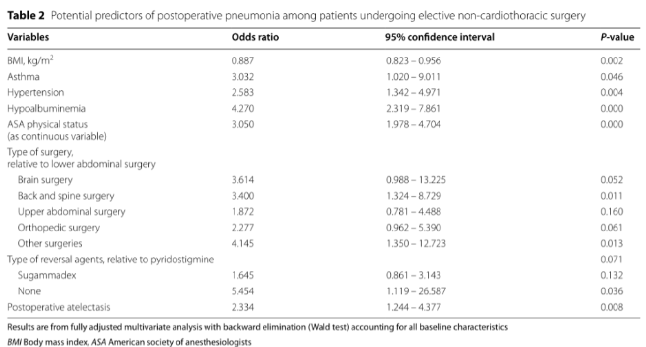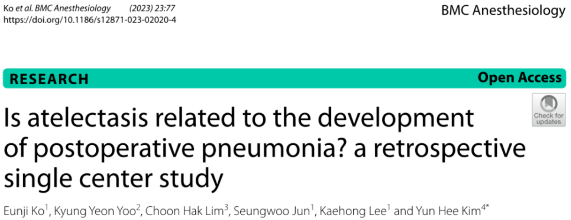 原始文献来源:Eunji Ko, Kyung Yeon Yoo, Choon Hak Lim,et al.Is atelectasis related to the development of postoperative pneumonia? a retrospective single center study.[J]. BMC Anesthesiology (2023) 23:77